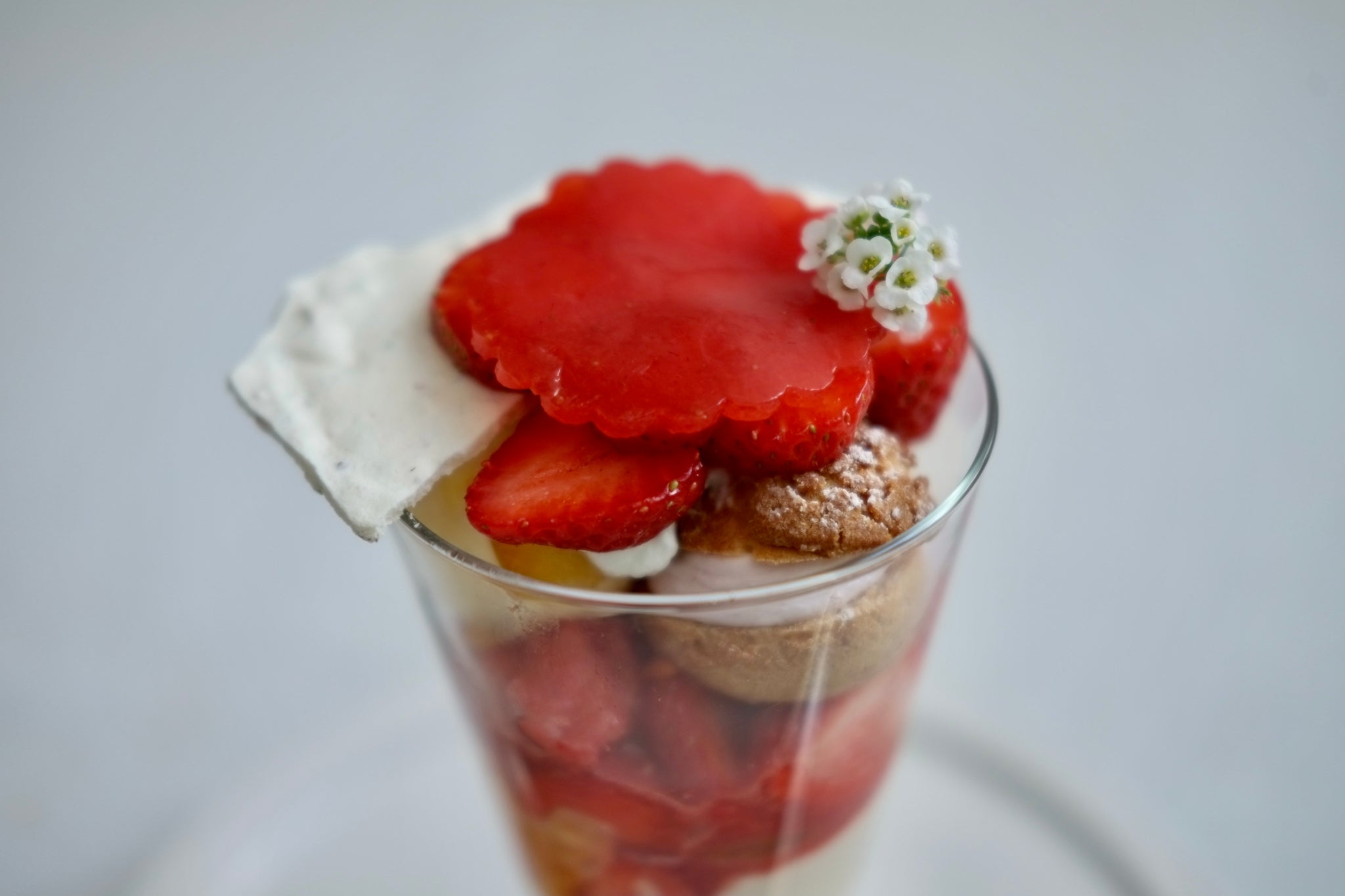 桜、エルダーフラワー、ラベンダー、カモミール、アリッサム等、苺と相性の良い花の香りをほんのりと効かせています。
